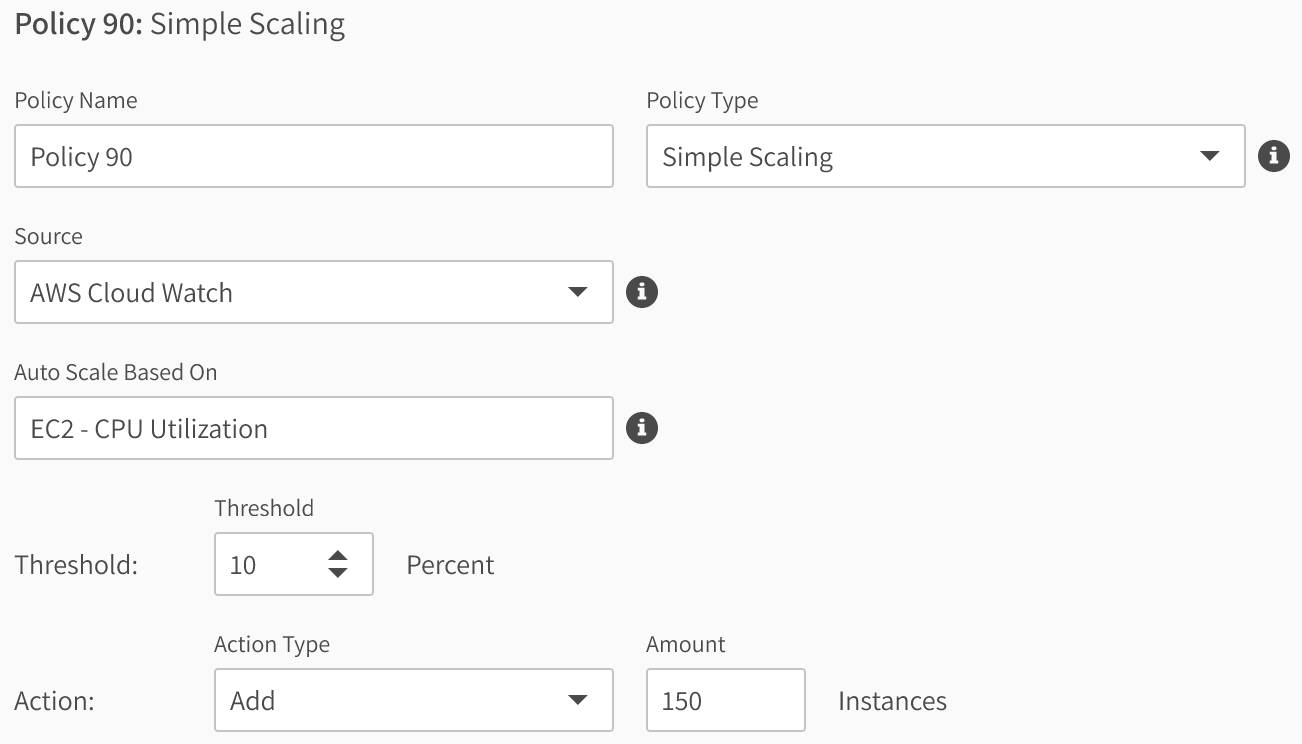 • Policy Name: Enter the name to assign to the policy. It is recommended to use a meaningful name to help you understand scaling actions better in the future.